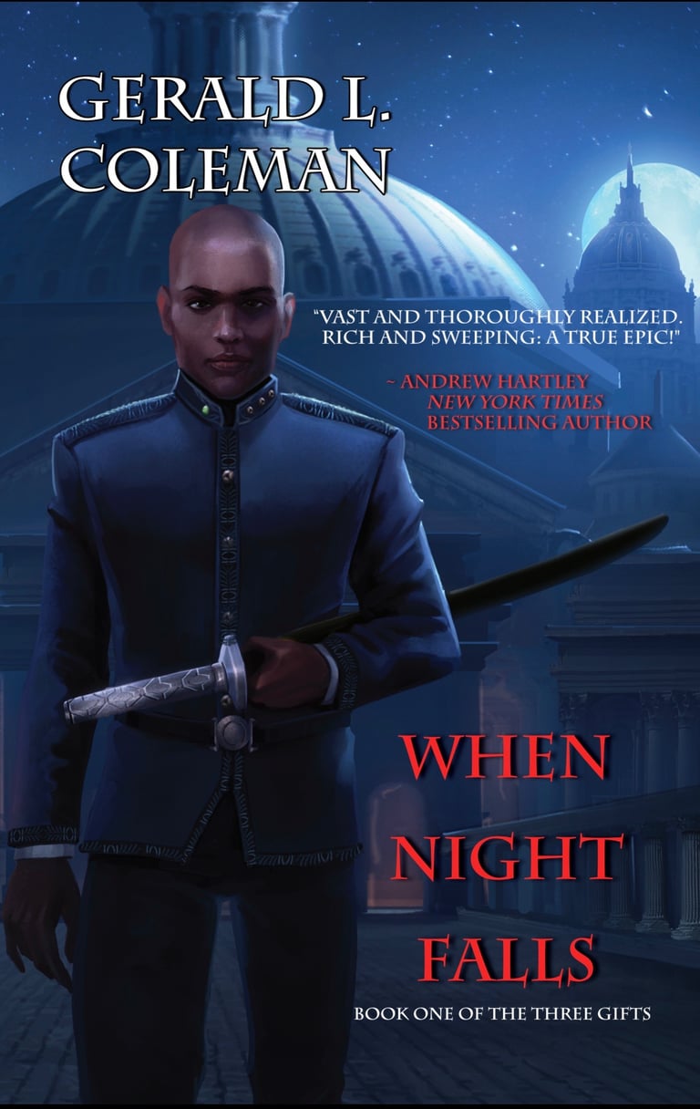 We rarely consider the reputation of our age. An ordinary one, for most of us, would suffice. You might be an Empress too concerned with the affairs of State, a soldier focused on your duty, a former rascal trying to find redemption, or even a great warrior too busy with your command to know that there are whispers being spoken in late-night taverns. But what happens when your ordinary age stops being so ordinary? What happens when dark, twisted things step out of the mists of legend to walk the world again? Strange, black ships have been spotted far out at sea. People are disappearing from towns without a trace. Cordovan, a member of the Watchmen of Alexandria, knows something is wrong, as he races toward the capital, hoping he will make it in time. Far to the north, two members of the ancient order of the Ki'gadi, fear the darkness may already be here. While the rest of the world carries on, unaware of the danger, they search for the place where the darkness is taking root. Heroes will be needed to face what is coming. Thankfully, Alexandria is home to one. His name is Bantu, the Commander-General of the Peoples Company. And he will be needed, when night falls.