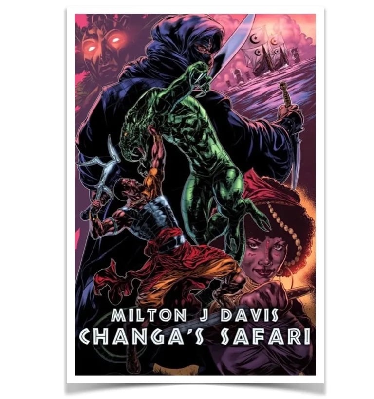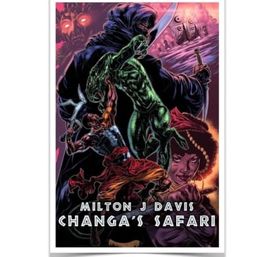 Changa's Safari Special Edition is 600 pages of non-stop Sword and Soul action, adventure and artwork.This tenth anniversary special edition of Changa's Safari contains entire series; Changa's Safari, Changa's Safari Volume Two, Changa's Safari Volume Three and Son of Mfumu. It also contains a gallery of color and black and white illustrations from all four books, in addition to special commissions.